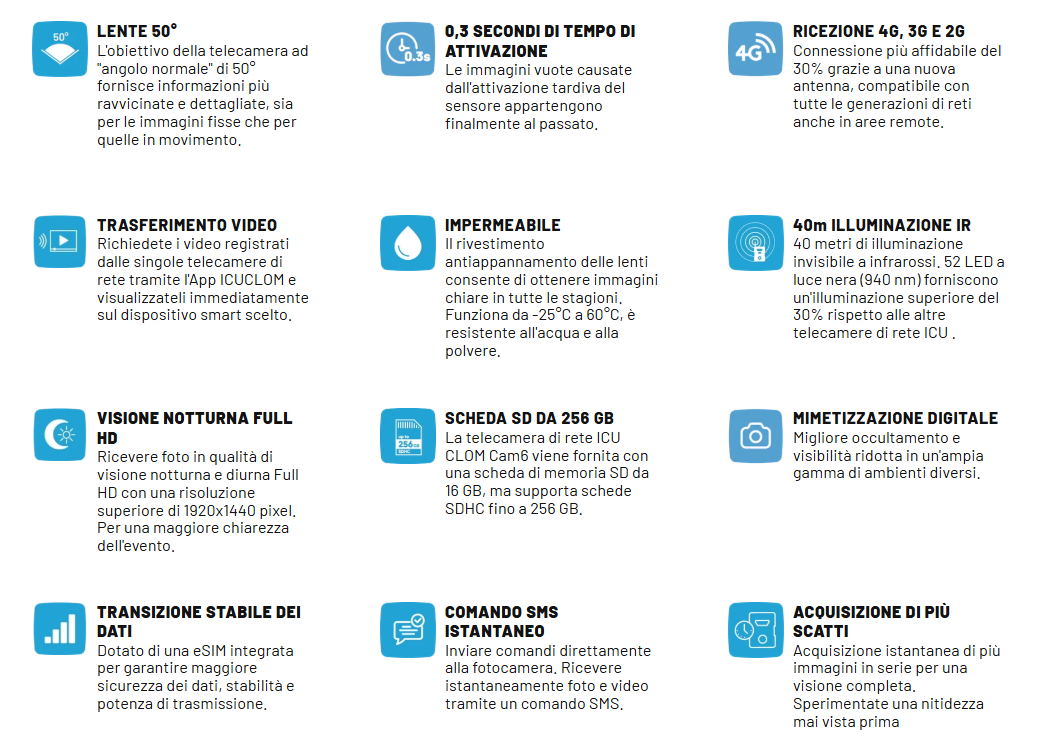 Modello top di gamma IcuClom, scelta perfetta per le applicazioni più impegnative, con caratteristiche e funzionalità all’avanguardia. Dotata di una connettività migliorata del 30%, visione notturna Full HD e un raggio d’azione più ampio grazie ad un obbiettivo e sistema di montaggio migliorati.