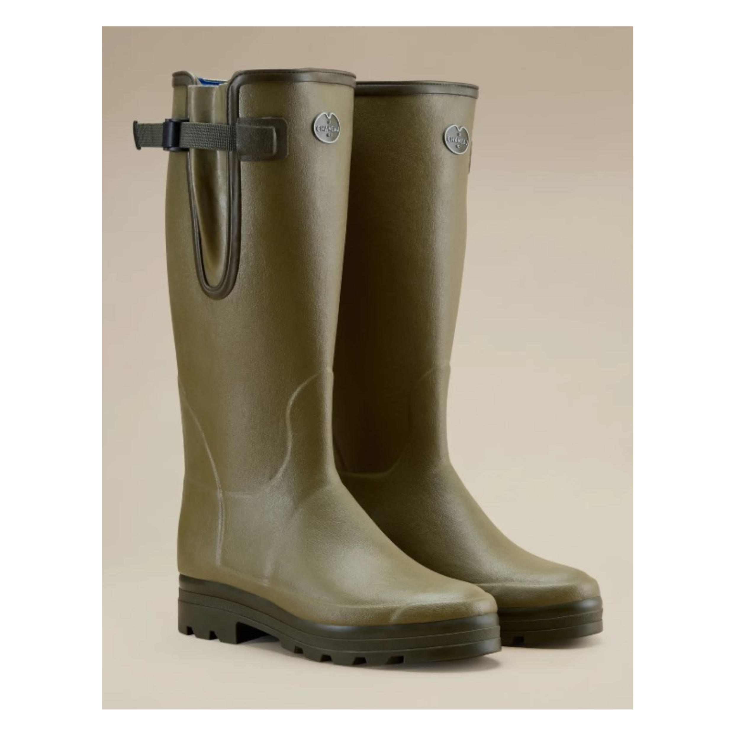 Questa versione, realizzata a mano in gomma naturale e dotata di una fodera in neoprene da 3 mm per il massimo comfort nelle giornate fredde, è disponibile nella calzata XL (fino a 46 cm), per chi ha polpacci più larghi.